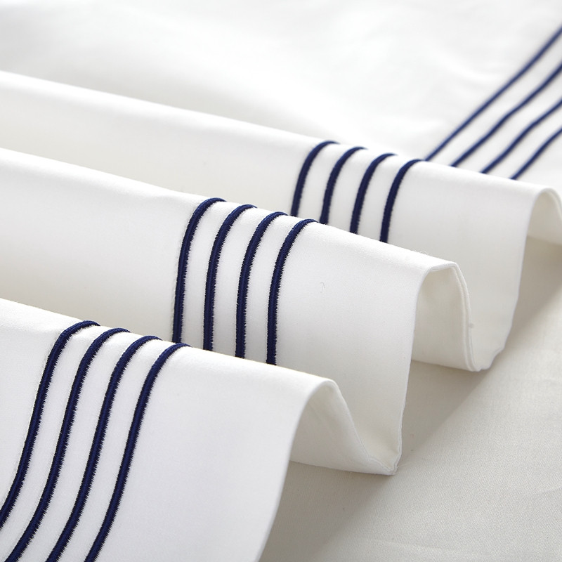 Dom / Produkty / Zestaw pościeli hotelowej / Bawełniany zestaw pościeli hotelowej / Poszewka na kołdrę z haftem w cztery linie, 100% bawełna, biała pościel 300TC