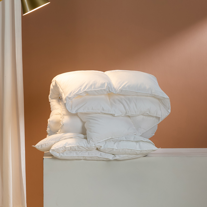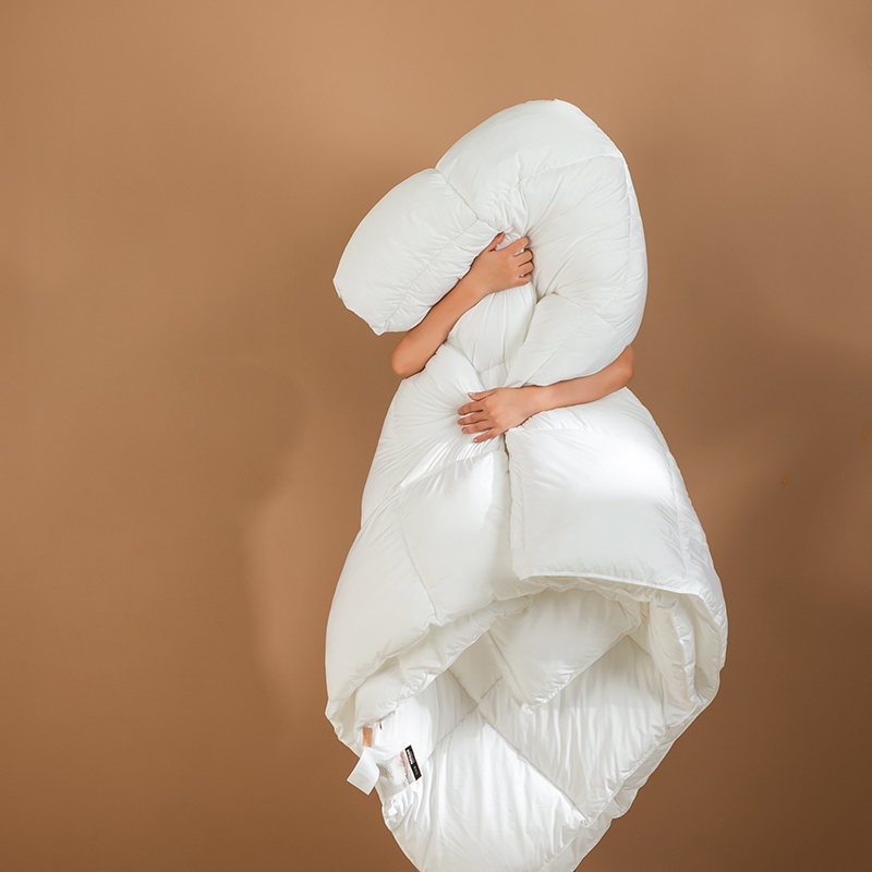 Wypełnienie tej kołdry stanowi wysokiej jakości puch gęsi z dużymi, pełnymi skupiskami zapewniającymi wyjątkową sprężystość i sprężystość. Naturalna trójwymiarowa struktura puchu gęsiego zatrzymuje powietrze, tworząc skuteczną warstwę izolacyjną, zapewniając wyjątkowe ciepło w mroźne zimowe noce, zachowując jednocześnie lekkość i nieucisk. Ta kołdra jest wykonana w 100% z bawełny, precyzyjnie tkanej o wysokiej liczbie (TC) w zakresie od 233 do 300, a nawet wyższe specyfikacje są dostępne na życzenie. Tkanina bawełniana jest naturalnie przyjazna dla skóry i wysoce oddychająca, skutecznie odprowadza wilgoć i zapobiega duszności, zapewniając suchość i wygodę podczas snu. Nasza klasyczna technika pikowania w kratkę bezpiecznie zabezpiecza gęsi puch w każdej małej siatce, zapobiegając przesuwaniu się lub gromadzeniu się puchu. Zapewnia to jednolitą grubość i długotrwałe ciepło, dzięki czemu kołdra jest zarówno estetyczna, jak i bardzo praktyczna.