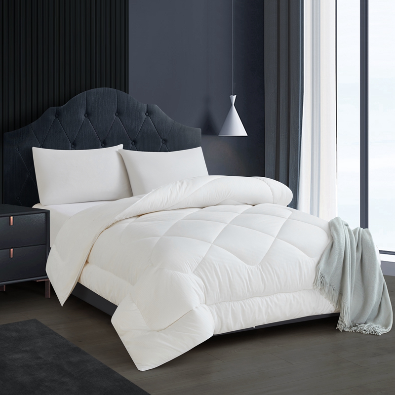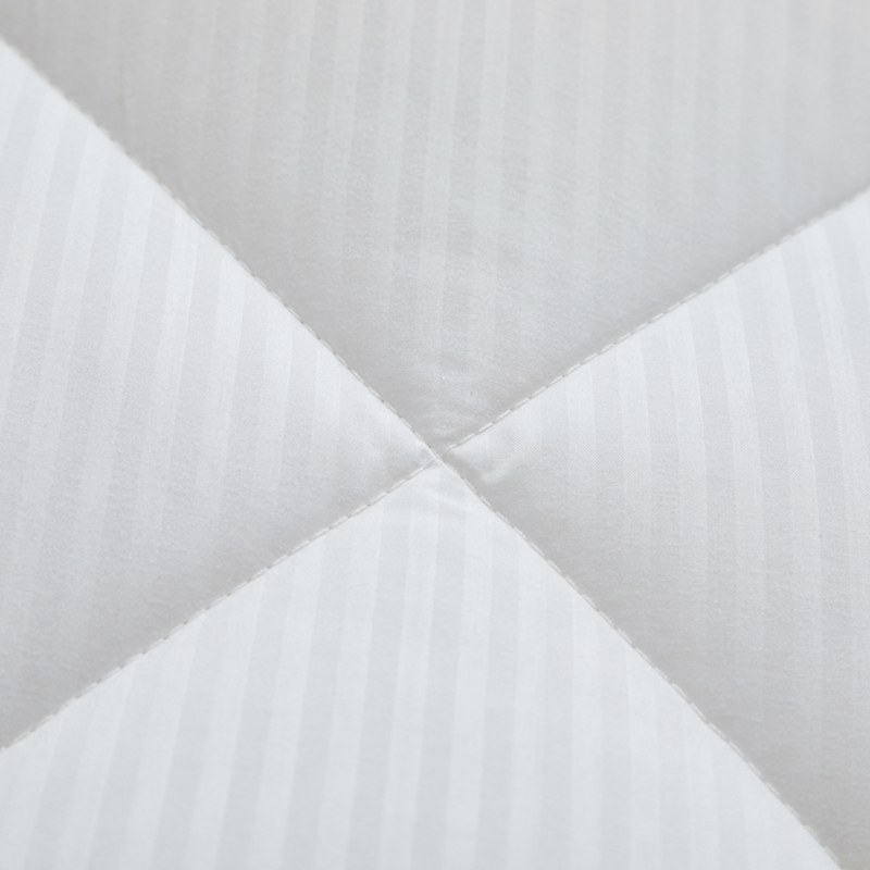 Zaprojektowana specjalnie do sypialni hotelowych, ta kołdra z mikrofibry jest wykonana z najwyższej jakości bawełny i miękkiego, ciepłego wypełnienia z mikrofibry. Dostępny w rozmiarach od twin do king, łączy w sobie najwyższej jakości bawełnę z wypełnieniem z mikrofibry. Bawełna jest oddychająca i miękka w dotyku, a wypełnienie z mikrofibry jest lekkie i ciepłe, zapewniając doskonałe ciepło bez objętości. Jej drobne włókna zatrzymują powietrze, tworząc efekt poduszki. Liczba nici w kołdrze wynosi 233/300TC (dostępne są opcje niestandardowe), co jest kluczowym wskaźnikiem jakości i trwałości tkaniny. Większa liczba nitek oznacza, że ​​włókna bawełny są tkane ciaśniej, co zwiększa wytrzymałość i miękkość tkaniny.